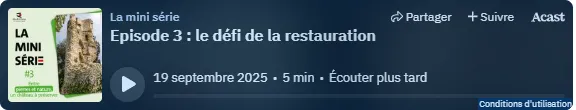 Dans cet épisode, Mélanie Villette, architecte du patrimoine, et Émeline Beauvais, conductrice de travaux, vous emmène au cœur d’un chantier exceptionnel.